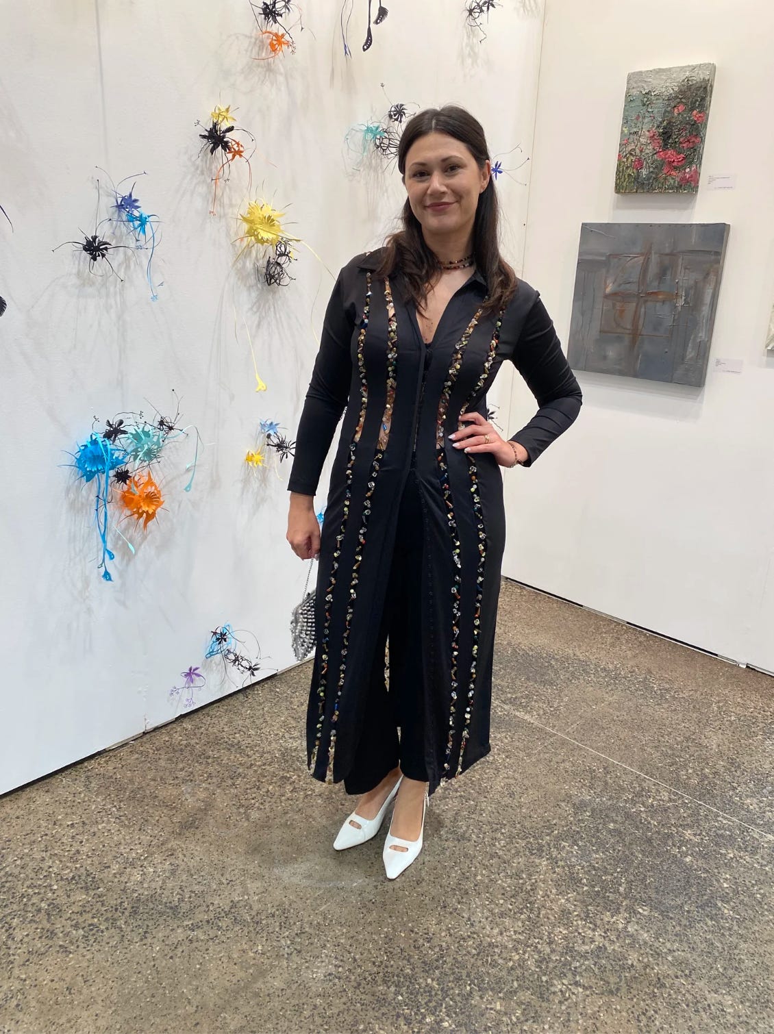 Another reason the dress felt like an appropriate choice for this year’s Art Toronto was that the fair introduced Arte Sur, an exhibition curated by Mexico City gallerist Karen Huber that spotlighted Latin American artists from 11 galleries. When I interviewed Art Toronto director Mia Nielsen for S Magazine, she told me that half of participating galleries this year featured Indigenous artists — a landmark milestone for the fair.